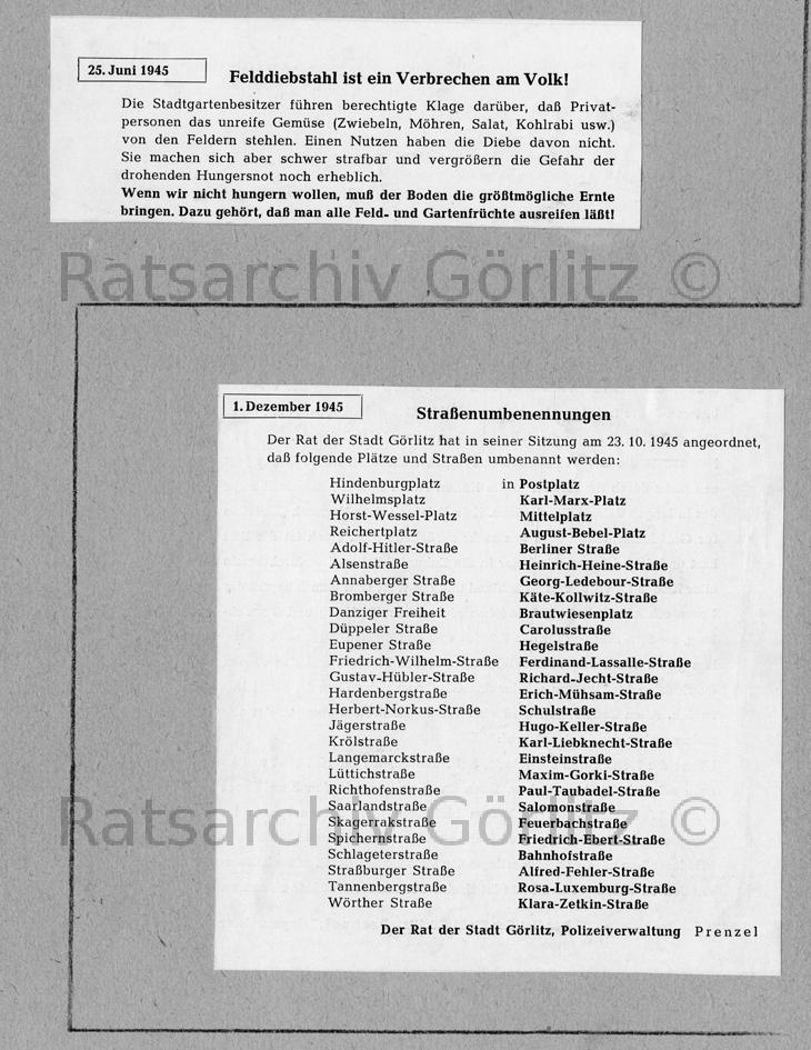 Feldkontrollen, Straßenumbenennungen
