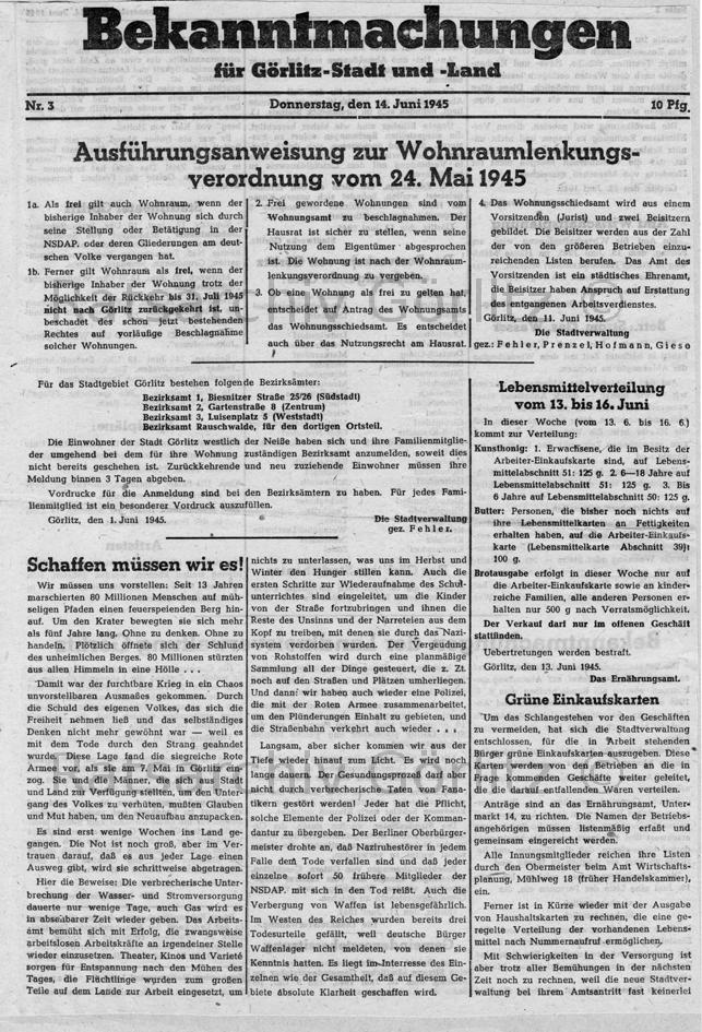 Bekanntmachungen Wohnraumlenkung (Schrift)